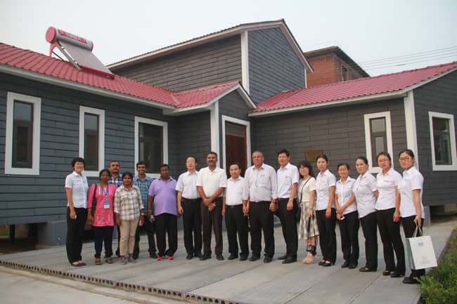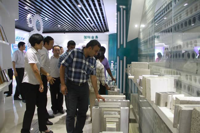 亞洲國家行業商協會領導一行參觀了天意機械的文化中心,智能辦公大樓、營銷中心、生產車間和天意機械國家住宅產業化基地樣板別墅,董經理向外賓詳細介紹了天意機械生產經營、技術創新、產學研合作、對外銷售等有關情況,并與外賓們親切交流。