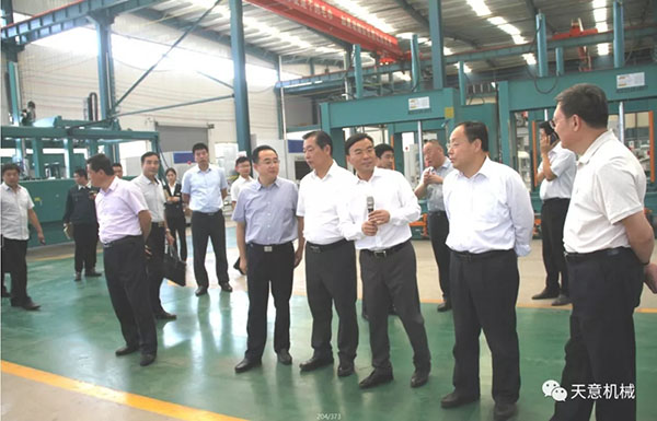 2019年9月23日,濟寧市人大常委副主任陳國華蒞臨天意機械考察指導,區委書記王宏偉,區人大常委會主任于立武,區人大常委會副主任趙廣嶺陪同調研,天意機械董事長劉洪彬陪同各級領導調研考察。